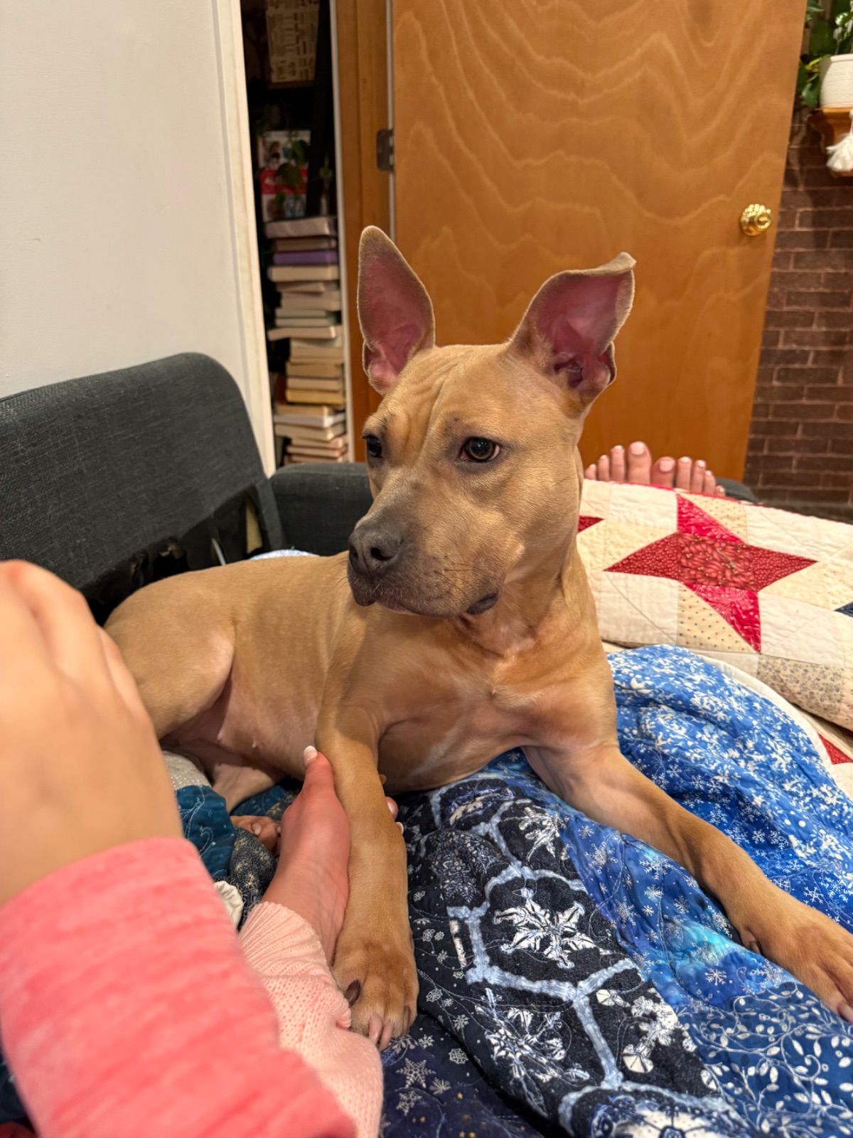 I’d like a few images of our groups three dogs together in a barre studio. Maybe working out in one or some and maybe working the desk or teaching or chatting in the lobby.